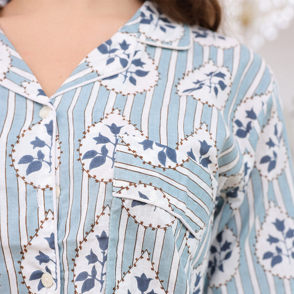Slip into comfort with our block-printed cotton pyjama set, thoughtfully crafted from 100% natural cotton for everyday ease. With its classic long-sleeve silhouette, this sleepwear and loungewear staple is handmade in small batches — a limited-edition design that embodies timeless comfort and mindful craftsmanship.