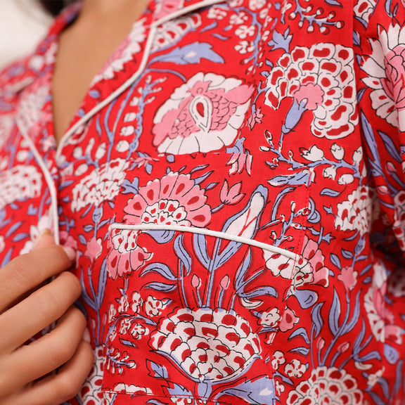 Slip into comfort with our block-printed cotton pyjama set, thoughtfully crafted from 100% natural cotton for everyday ease. With its classic long-sleeve silhouette, this sleepwear and loungewear staple is handmade in small batches — a limited-edition design that embodies timeless comfort and mindful craftsmanship.